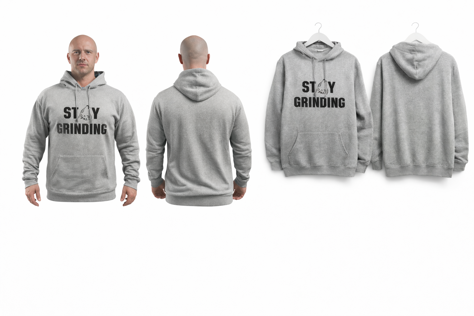 Hooded athletic sweatshirt with the patented Stay Grinding Logo on the front. Comprised of 50% cotton and 50% polyester. Jerzees Nublend.